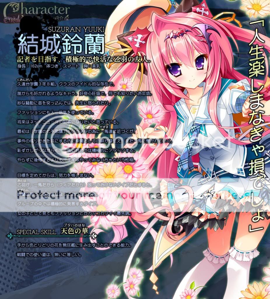 Tựa game mới nhất của Lass, với setting tuơng tự với 3days và 11eyes đã làm mưa làm gió một thời. Game trước của hãng Shoujo Shin'iki đã chìm xuồng thảm hại sau khi đón nhận cả tạ gạch đá của đa số người chơi Japanese, liệu lần này Lass có vực dậy phong dộ của mình hay không? Hãy chờ xem